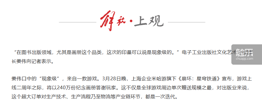 这个动静天然是正在逛戏圈子里惹起了轩然大波——一方面,正在此之前,从来没有任何一个逛戏为玩家送出这么多的实体留念物,米哈逛的手笔令人惊讶;另一方面,既然有这么多人可以或许获得这份留念册,“可以或许成为240万分之一”也就成了一件既风趣、又取有荣焉的事。不只玩家对逛戏的周年勾当十分关心,就连官媒也留意到这件事,并必定其价值。《解放日报》报道:“这不只是全球逛戏周边单次赠送规模之最,对出书业来说,这个超大订单对出产手艺、出产流程甚至物流等财产链环节,都是一次迭代。”