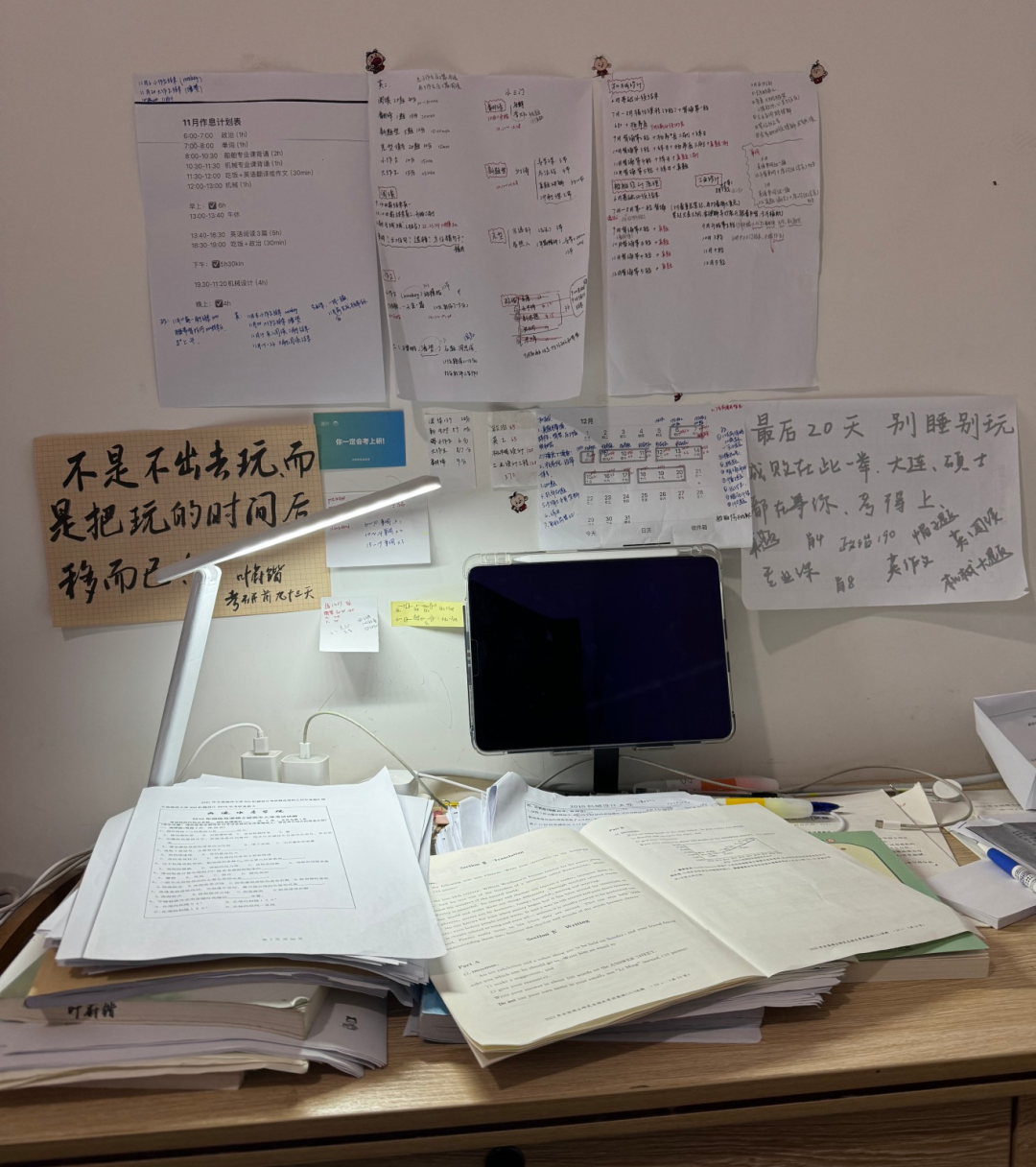 他最亏弱的是数学,报名进修周洋鑫的网课,将考研数学零根本课程刷了两遍。正在坚苦的数学面前,他每次都很疾苦,却一曲默默,“只需一学数学,我就很疾苦,我就会想吃甜的工具。”“最难受的时候,我心里解体,每天大把大把掉头发,都快支持不住了。”面临考研上各类挑和,他一咬牙挺过来。然而,正在离测验只剩一个多月时,他俄然得知专业课册本要改换的动静,人一会儿就解体了。那时,他正处于严重的练习中,还面对考研的压力,同时,又碰到一些家庭琐事的烦末路,为此心里很是焦灼。看到他解体,父母心里很难受,常常陪同他摆布。父母带他去郊外玩耍,让他沉浸正在那薰衣草、马鞭草的花海之中,他的表情一会儿放松下来。父母还给他做各类可口、甘旨的食物,有他最喜好的排骨酥、炸肉片。父母不只是物质上的支撑者,更是上的支柱。环节时辰,双馨书院教员潘婷婷帮他阐发,改换专业课书本这件事,是所有考研学子都要面临的坚苦,并激励他不要放弃。这位经常送给他画画、给他写信的潘教员,总会正在环节时辰激励他、支撑他。